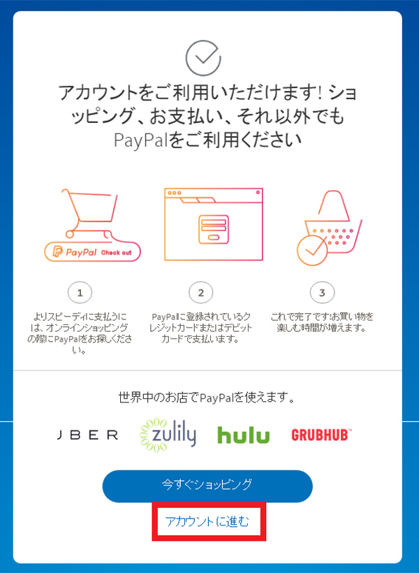 5. アカウントページへ移動後、PayPalから届くアカウント認証メールを確認し、新規登録完了